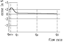 從最小流量到分界流量(不包括分界流量)為±5%.