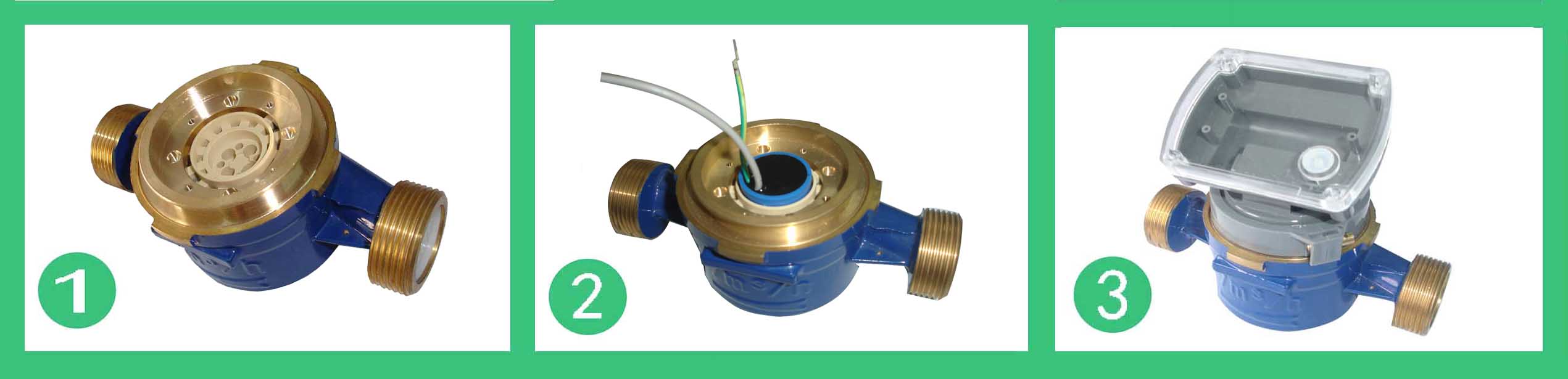 CD02TAR單流束無磁熱量表流量計(jì)的結(jié)構(gòu)如圖,其工作原理是:熱水進(jìn)入流量計(jì),經(jīng)進(jìn)水導(dǎo)向孔沖擊計(jì)量腔內(nèi)的葉輪旋轉(zhuǎn),再經(jīng)出水導(dǎo)向孔流出流量計(jì)。葉輪上面嵌有不銹鋼膜片,隨葉輪旋轉(zhuǎn),在隔板上端接近不銹鋼膜片處可裝電感類傳感器,接受葉輪旋轉(zhuǎn)的周期信號(hào)。