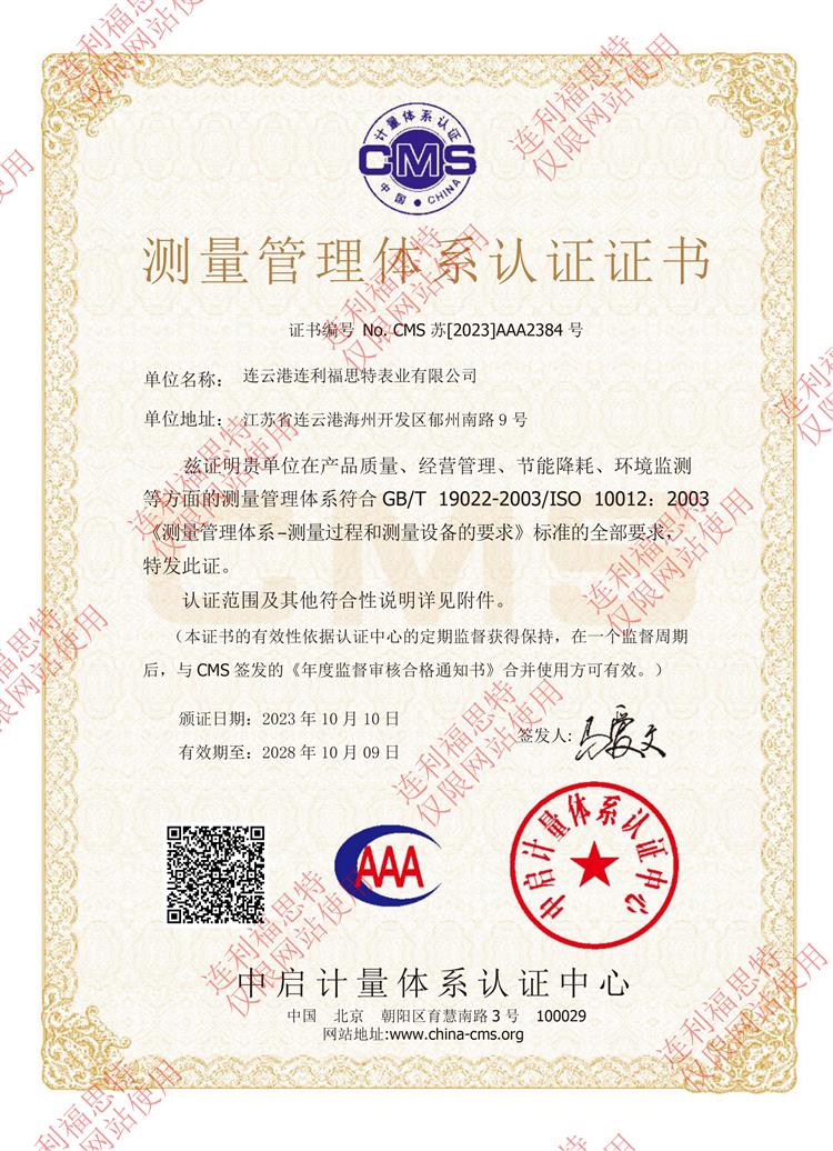 測(cè)量管理體系認(rèn)證證書