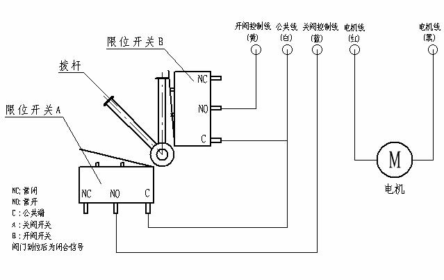 4)執(zhí)行機構引出線中:紅色線為電機正極引出線,黑色線為電機負極引出線,黃色線為開閥到位引出線,藍色線為關閥到位引出線,白色線為閥到位公共線。